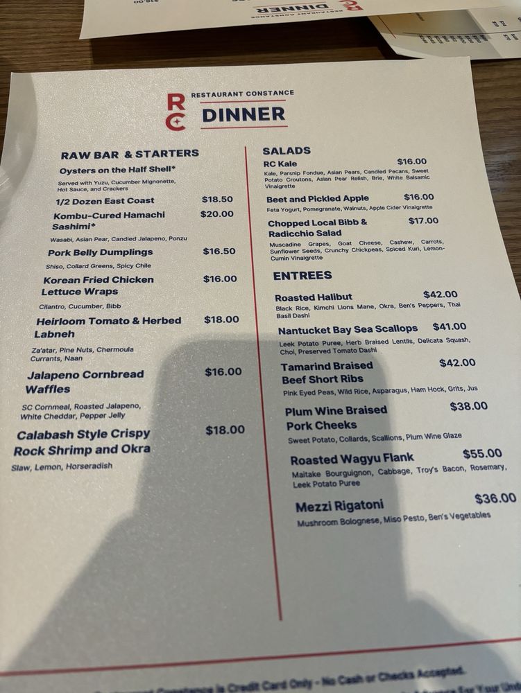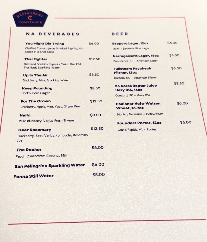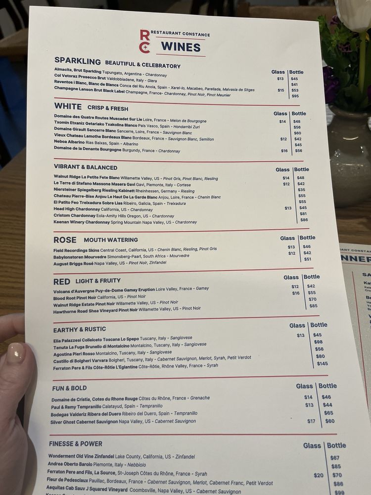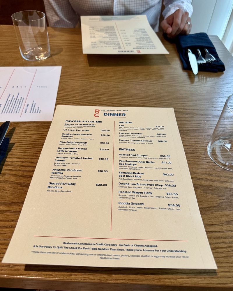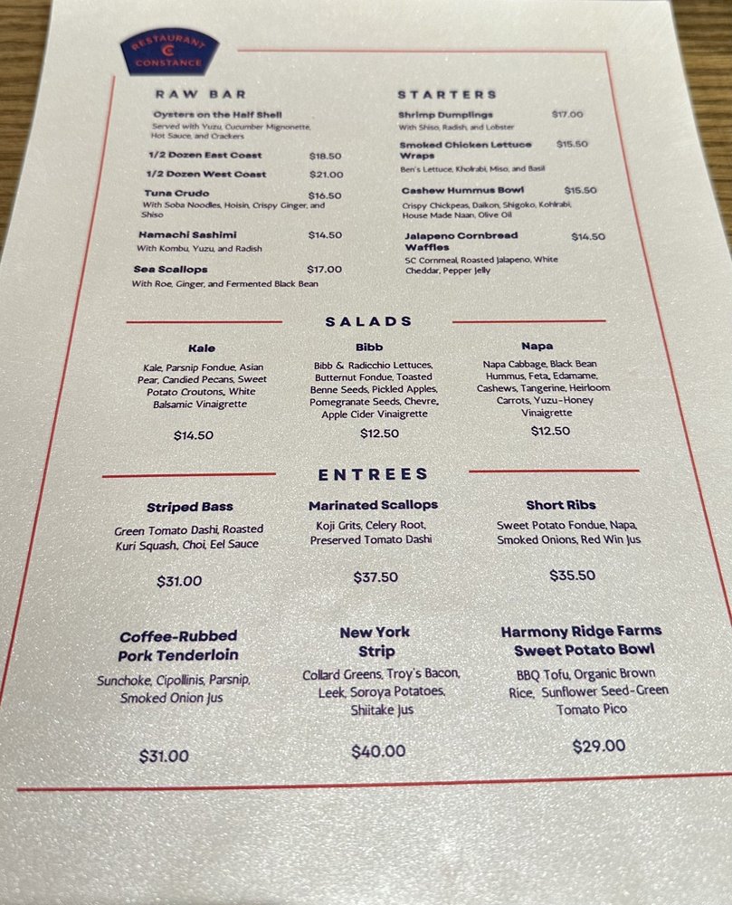 Restaurant Constance, located in Charlotte, NC, offers a unique dining experience with a constantly changing menu based on seasonal ingredients from Carolina-based farms. The intimate setting with only 10 tables creates a cozy atmosphere, perfect for special occasions. The NA Cocktail Flight allows for a variety of cocktail tastings, while standout dishes like the Korean Fried Chicken lettuce wraps and jalapeno cornbread waffle showcase innovative flavors. The Outer Banks scallops and chocolate miso tart provide a satisfying finish to a memorable meal. With rave reviews praising the exceptional service, extensive wine selection, and delectable dishes such as hamachi, beef short ribs, and wagyu steak, Restaurant Constance promises a culinary experience worth returning for. Make a reservation to indulge in a remarkable fusion of textures and flavors at this must-visit New American hotspot.